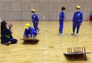 他の小学校の友達と、4種類のニュースポーツで交流しました。