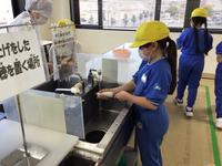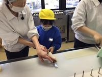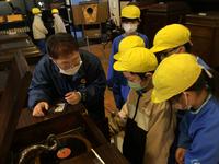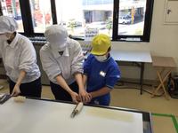 次は、こども歴史文化館へ。ここでは、福井にゆかりのある先人たちや、漢字のことを学びました。お弁当を食べた後は、安田かまぼこ道場に出発です。子どもたちの一番の楽しみは手作り体験。魚そうめんを作ったり、魚肉のすり身を竹の棒にまきつけて、上手に蒲の穂ちくわを作ったり。