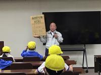 まず、南越消防組合中消防署の見学へ。何種類もある消防車や、通信指令室の様子を見せていただきました。消防服は10キロもあること、更にボンベをかついだり、ホースを持ったりすると40キロにもなると聞いて、子どもたちは驚いていました。