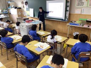 国語の授業でした。読んだ本を、カードに書いて、友だちに知らせましょうという内容でした。