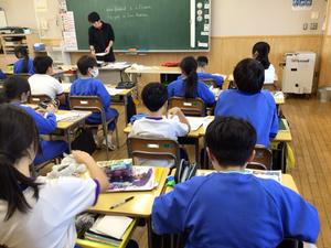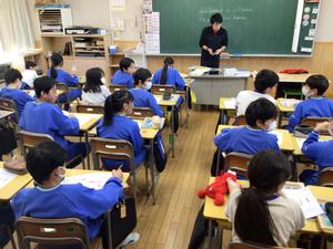 外国語の授業でした。この日は、単元テストが返却されました。リスニングの問題の振り返りは、再度、リスニングを行って確認していました。