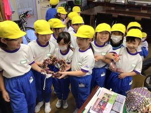 さて、昼休みには、1年生の児童がたくさん来てくれました。手には、素敵なリースと畑で取れたサツマイモ。リースやきれいにラッピングされたサツマイモに負けないくらい、キラキラ輝く1年生の笑顔に癒されました。