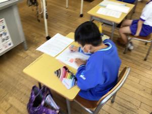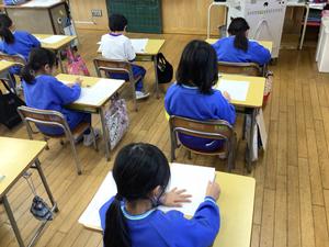 「お話のさくしゃになろう」ということで、場面の風景が伝わるような絵を描いたり、文章を考えたりして取り組んでいました。完成が楽しみです。