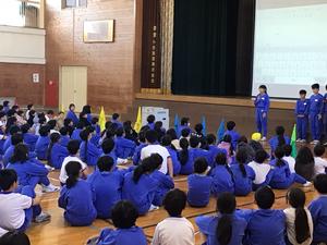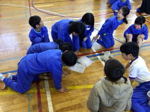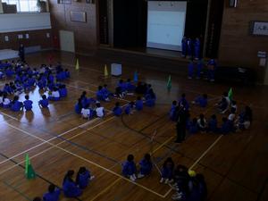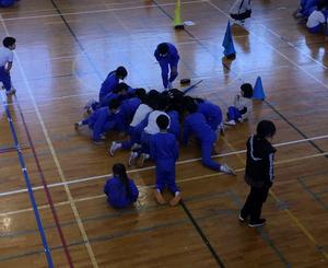 面白かったお題は、30秒以内に背の順に並ぶというお題。高学年がリーダーシップを発揮して、並ばせていました。