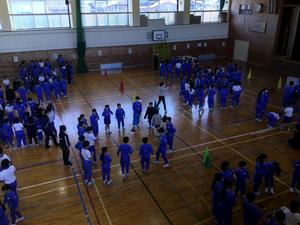 2学期最後のわくわく班活動です。今回は、体育館で児童会が中心となって「クリスマスビンゴ」を運営してくれました。