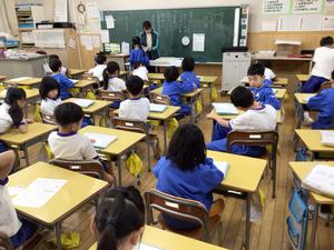 1年生のクラスは、年賀状の宛名、差出人に間違いがないか最終チェックをしていました。