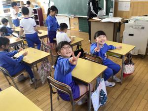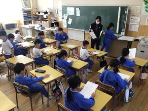2年生の教室では、読書カードや版画作品のタイトルを書いて提出していました。