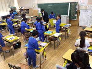 3年生の教室では、問題を解いていたり、引き出しの中やロッカーの整頓や清掃をしたりしていました。