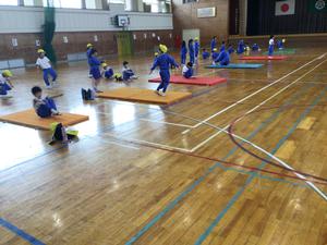 しっかりと体が温まってから、マット運動に取り組んでいました。