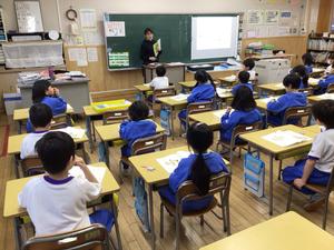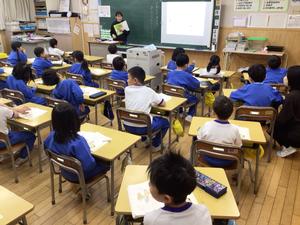 国語「くわしくきこう」という内容でした。お互いインタビューをするために、気を付ける点について担任の話を聞いていました。