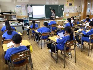 1組は社会「情報の活用」、2組は国語「言葉でスケッチ」という内容で授業をしていました。