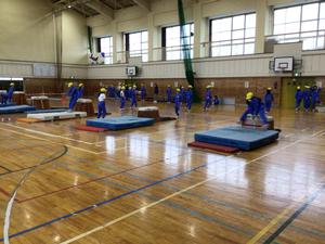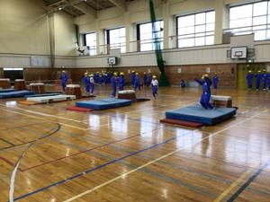 跳び箱の様子をお伝えします。跳び箱を縦にして開脚跳び、横にして閉脚跳びの練習でした。