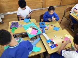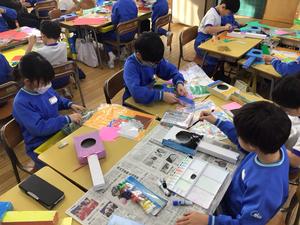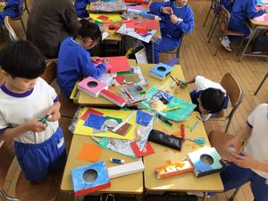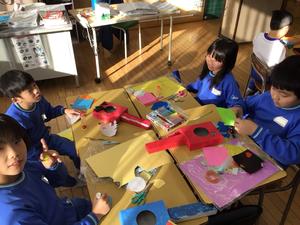 好きな色を塗ったり、色紙を貼ったりしてオリジナルギターを製作中です。