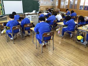 1組は社会、県庁所在地プリントに取り組みました。2組は国語、漢字テスト前の最終チェックをしていました。