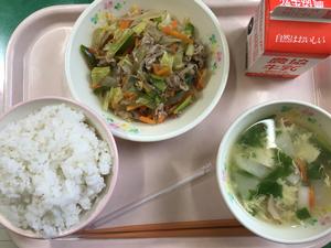 ご飯、牛乳、豚肉と野菜のみそ炒め、カブのかきたま汁でした。