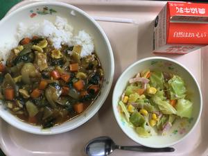ポパイカレーライスは、打ち豆が入っていました。食感が新鮮でした。ポパイだけに、ほうれん草も入っていました。彩りが豊かになりました。また、野菜の甘みをものすごく感じるドレッシングサラダでした。午後の授業を乗り切っていけるパワーを給食からいただきました。ありがとうございます。