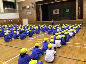 防災士や王子保地区自治振興会、王子保公民館から6名の方をお迎えしました。児童が避難する様子を見ていただきました。
