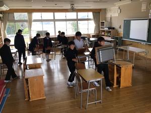 美化委員会は、教室移動に備えて小さい机を下の階に移動するために活躍してくれました。