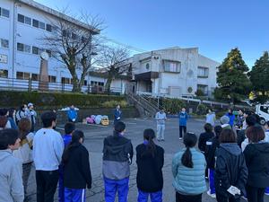 学校公開の2時間目は小学校・中学校一緒にハッピーマラソンです。1人1人走る距離や時間の目標を決めて挑戦しました。校長先生からつらいことも諦めずに頑張る力をつけてほしいとお話がありました。たくさんの保護者の方の応援を受けながら、長い坂道もがんばり、それぞれの目標に向かって諦めずに走り切りました。走った後での交流会では、つらかったけど頑張って走ったことや達成感があったことなど笑顔で感想を交流しました。
