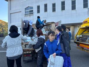 秋の資源回収が8時からありました。各地区から新聞、雑誌、ダンボール、アルミ缶、ビール瓶などが次々と集まりました。生徒の力も借りてコンテナに積み込むとコンテナがいっぱいになりました。資源回収の後に9時からPTA実行委員会(家庭地域学校協議会)がありました。休みにも関わらず集まって、PTA行事や学校評価、学調分析などについて熱心に協議いただきありがとうございました。