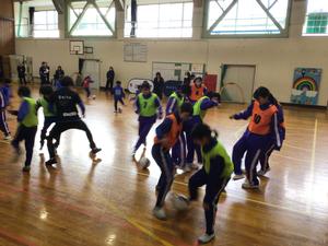 小学1年生~中学3年生は5時間目に人権擁護委員さんと福井ユナイテッドの方を講師として人権サッカーをしました。最初に人権擁護委員さんから人権とは全ての人が幸せに生きる権利であること、さまざまな人権侵害があること、人の命は重いから戦争はしてはいけないこと、子ども人権SOSミニレターを使って相談してもらえばみんなを守ることなどを聞きました。その後、福井ユナイテッドの方とサッカーを楽しみました。