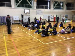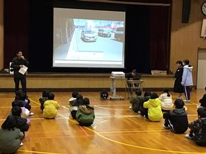 坂口校で2時間目に不審者対応の避難訓練をしました。不審者侵入の放送を聞いて先生方が対応している間、静かに教室の隅で待機しました。警察官が来て不審者が拘束された後に、体育館に避難しました。体育館で緊急通報した時の対応を、声掛け事案と写真を撮られた事案の場合について代表者が練習しました。短い間のことだけど服装、車のナンバー、年齢などたくさん聞かれるので覚えておいた方が良いことを学びました。