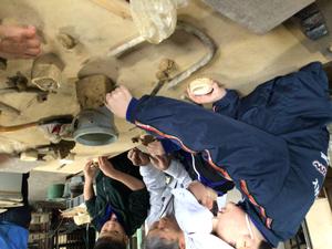 1~4年生は秋の校外学習に出かけました。まず、越前セラミカさんで瓦の製造過程を学びました。粘土から瓦の形を手作業で作るところ、大きな窯、機械で運ばれて行く瓦などビックリしました。ミニ鬼瓦と余った粘土で作品を作ったので、できあがりが楽しみです。瓦割り体験は少し痛かったけどスッキリしました。次に菊人形でお弁当とお菓子を食べて、グループに分かれて乗り物に乗りました。