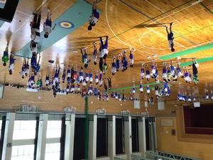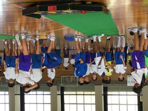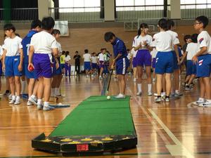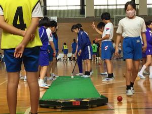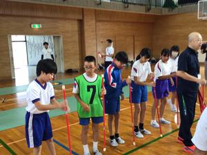 二中の体育館に二中校区の小学6年生(南小、神山小、西小、坂口小)が集まってニュースポーツを通して交流しました。坂口小は5・6年生で参加しました。6つのニュースポーツの種目を学校が混ざったグループで回っているうちに、自然と話すようになり仲良くなりました。中学生になってまた、会えるのが楽しみです。