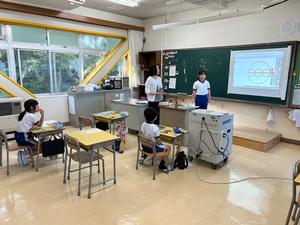 3年生は円の勉強をしています。直径は半径の2倍の知識を使って、直径18cmの大きな円の中に並んだ3つの小さな円の半径を求めました。