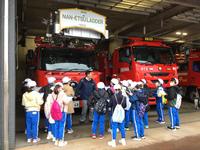 中消防署では、水槽車、ポンプ車、救急車などの車の中の設備を見せてもらい、それぞれの車の役割を知ることができました。子どもたちは、消防署員の方の話を聞いて、命を守るために大変な苦労をしているのだと感じていました。