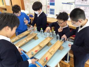 吉野瀬川ダム建設事務所の方に来ていただき、ダムの建設方法や働きについて学習しました。ダムの模型を使って、ダムがある場合とない場合の水流れを比べました。