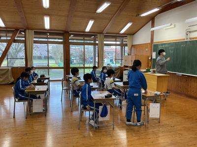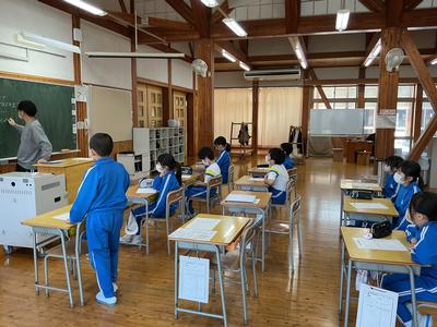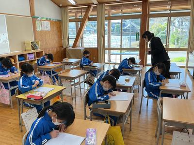 2、3年生はしっかり先生のお話を聞いて、音読カードを作っています。丁寧に自分の名前を書いたカードを作っていました。