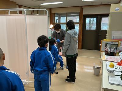 全校児童が学校歯科医さんに歯の状態を見ていただきました。「白山小の児童の歯の状態は大変よく、歯磨きも上手にされている。虫歯がある子が大変少ない」と褒めていただきました。今後もみんなのお口の中をいい状態に保っていきたいです。