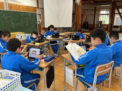 5年生は課題が早く終わった児童が自分で進んでAIドリルの練習問題を解いていました。