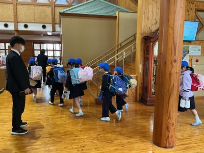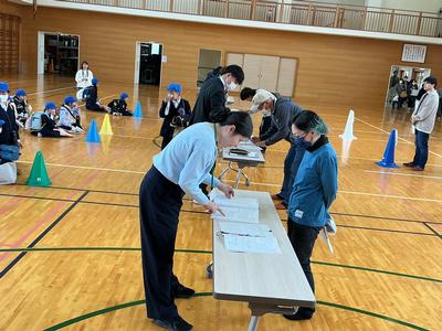 大地震による原子力災害が起こったという想定で、保護者への引き渡し訓練が行われました。子どもたちは放送をよく聞いて、落ち着いて行動することができ、また、保護者の方々も手順を理解してくださって、大変スムーズに引き渡しをすることができました。ご協力ありがとうございました。
