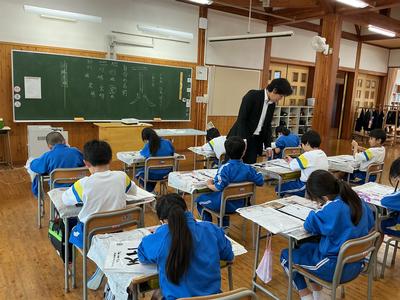 4年生は書写で自分の名前を筆で形よく書く練習をしていました。自分の名前は何度も書きますが、意外と形よく書くのは難しいです。
