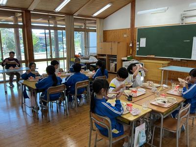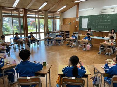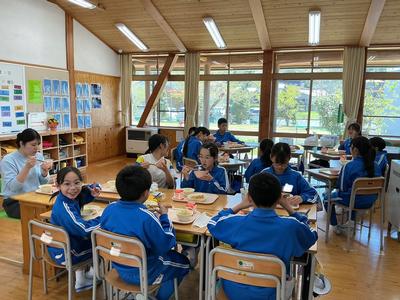 今日の給食は大豆の旨煮と小松菜と厚揚げの味噌汁です。今日もみんなもりもり食べています。