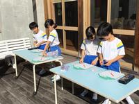3年生の理科では、「太陽とかげ」の学習をしています。先週は遮光プレートで太陽を観察しました。子どもたちは、太陽を目にした途端、「うわあ!見えた」と喜びの声をあげていました。今日は、影の動き方と太陽の位置の変わり方を調べました。心地よい秋晴れで、1日しっかり観察し、記録をとることができました。