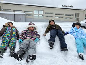2日間でたくさん雪が降りました。グラウンドは、辺り一面真っ白、雪遊びをたっぷり楽しむことができました。