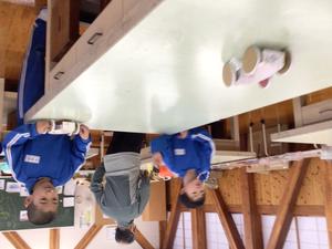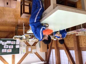 空き箱を使って車を作りました。ゴムの力で走る車です。車の土台ができあがり、動かしてみました。次の時間には、車の上の部分を仕上げていきます。
