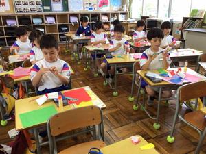 図工の学習では、「いっしょにあそぼうぱくぱっくん」の学習が始まっています。