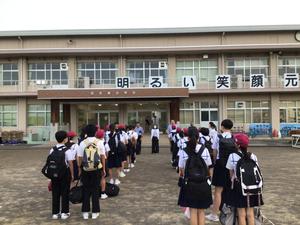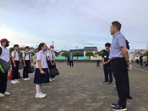 子供たちは元気に登校し、出発式を行った後バスに乗り込みました。