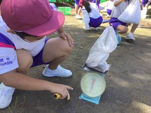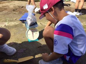 子どもたちは、前時までに身の回りの物の重さ調べをしてきました。そのことを生かして、「国語辞典の重さが1kgに近かったよ!」という声も聞こえてきました。砂の量を微調整しながら1kgの重さをつくった子どもたちは、「けっこう重たい!」「思ったよりは軽いかな。」と感想を話していました。