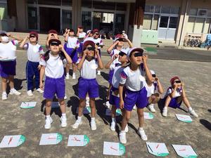 遮光プレートを通して見る太陽は、きれいな黄色い円形になっており、「きれい!」という歓声が上がりました。