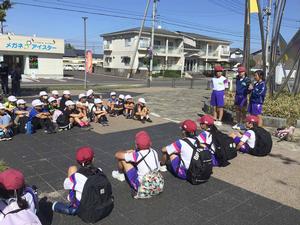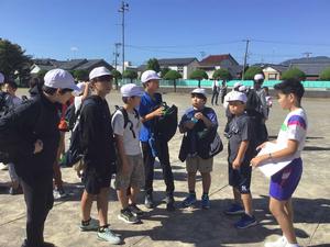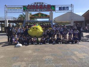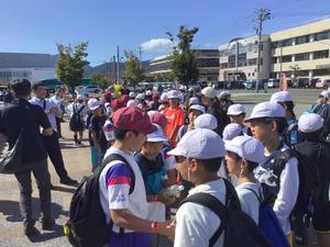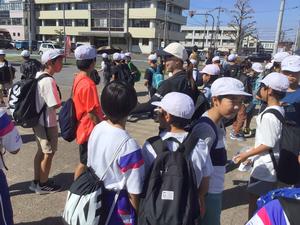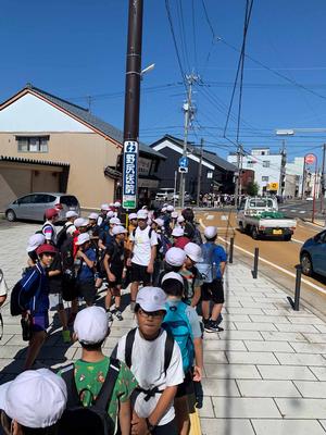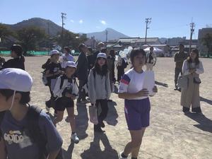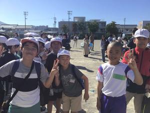 その後は、東小学校のみんなに見送ってもらい、徒歩で武生中央公園へ。200人弱の大行列でしたが、みんなで交通ルールを守り、無事に目的地に着くことができました。