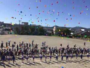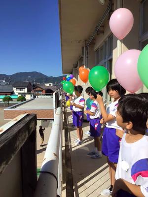 秋晴れの空に色とりどりの風船が飛ぶ様子を見て、子どもたちから大きな歓声が上がりました。
