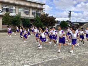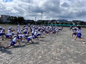 まずは準備運動。5年生の体育委員による号令で体をほぐします。スタートの時は緊張した様子でしたが、みんな最後まで走り切ることができました。