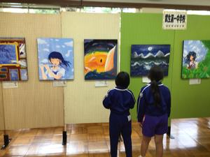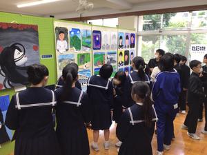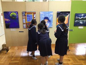 学校公開を地区の文化祭と同日開催にしたので、午後からは各学年がグループに分かれて、公民館で作品展示を鑑賞をしました。文化祭には、こども園児から中学生、一般の方々まで、幅広い年代による作品が展示されていました。子供たちは自分の興味の持った作品を思い思いに鑑賞していました。保護者と一緒に作品を見て回る児童の姿も見られ、親子で感想を交わしながら展示を楽しむ様子も見られました。作品を通して、子供たちはさまざまな表現に触れ、新たな気付きや関心を深める機会となりました。