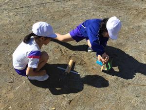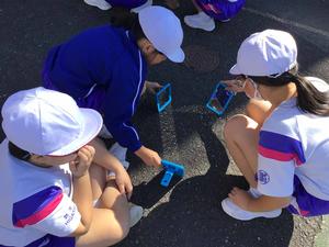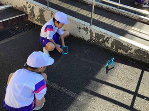 久しぶりの晴れ間ということで、絶好の観察日和でした。日なたの温度と日かげの温度を調べたり、鏡ではね返した日光の進み方を調べたりしました。