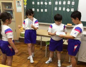 2学期から新たに加わった遊び係とお誕生日係の出番です。遊び係は、体育館での「ふえおに」の遊びを盛り上げながら上手に進行してくれました。教室では宝探しをして、隠されたキーワード探しを楽しみました。